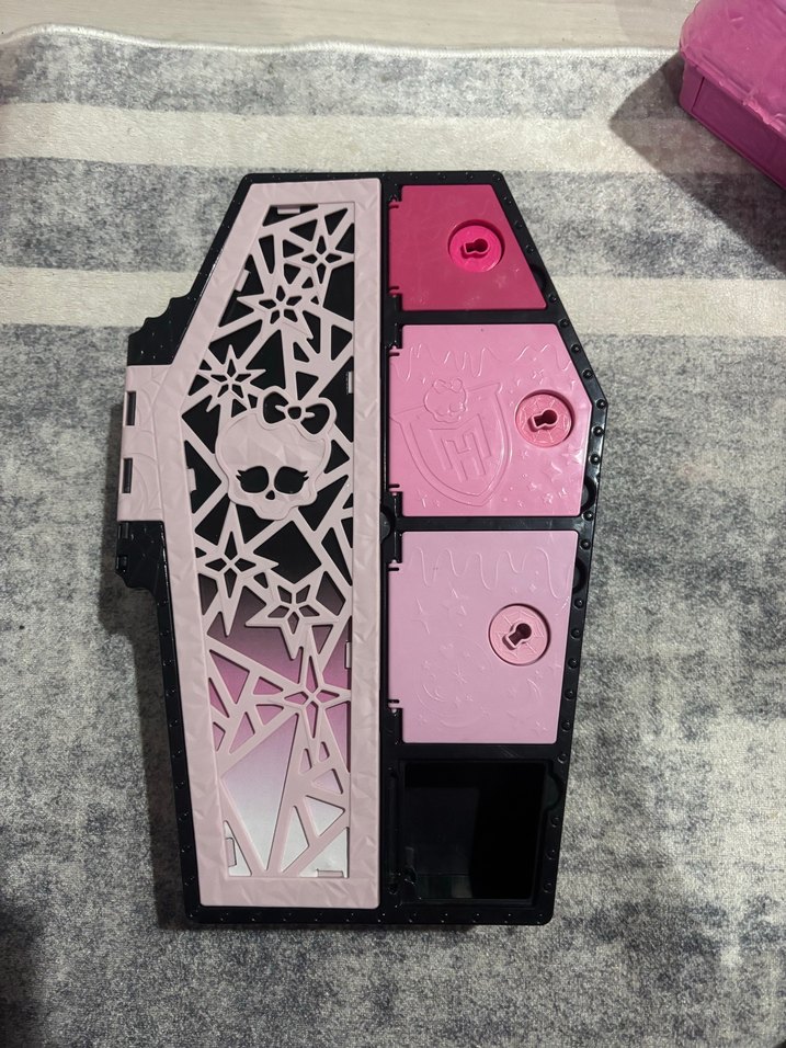 Monster High hayranları ve koleksiyonerleri için harika bir parça! Skulltimate Secrets serisine ait, Draculaura temalı şık tabut gardırop. ✨ Ürün Özellikleri: • Orijinal Monster High (Mattel) ürünüdür. • Tabutun iç kısmı detaylı ve renkli görsellere sahiptir. • Yan taraftaki kilitli bölmelerin hepsi çalışır durumdadır, aksesuarları saklamak için mükemmeldir. • Tabutun arkasında asma aparatları mevcuttur; isterseniz duvara asarak sergileyebilirsiniz. • Kırığı, çıkığı veya güneş solması yoktur. Fotoğraflarda görüldüğü gibi temiz ve bakımlıdır. Not: Sadece tabut (gardırop) gönderilecektir, bebek ve küçük aksesuarlar dahil değildir. Eksik parçası olanlar veya koleksiyonunu genişletmek isteyenler için kaçırılmayacak fırsat! #MonsterHigh #Draculaura #SkulltimateSecrets #MonsterHighTabut #Mattel #MonsterHighDolls #MonsterHighTurkiye #Koleksiyon #OyuncakGardırop #DraculauraGardırop #MonsterHighEşya #PembeTabut #MonsterHighAksesuar #İkinciElOyuncak #DolapSatış #MonsterHighKoleksiyon