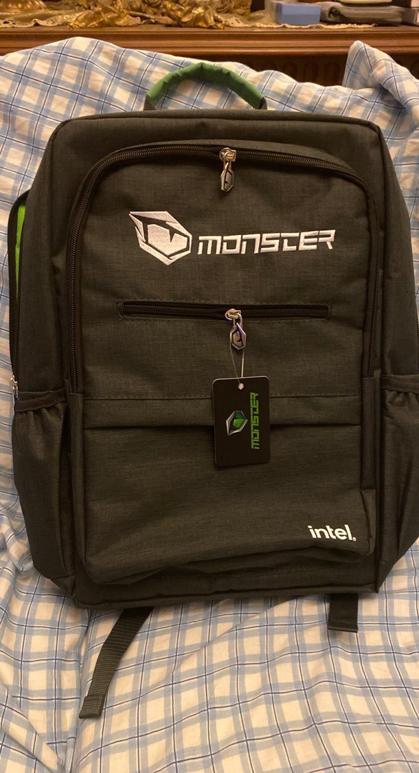 Gri renkli, Monster ve intel baskılı erkek sırt çantası. Çoklu fermuarlı bölmeleri ve rahat sokak stili bulunur. ️