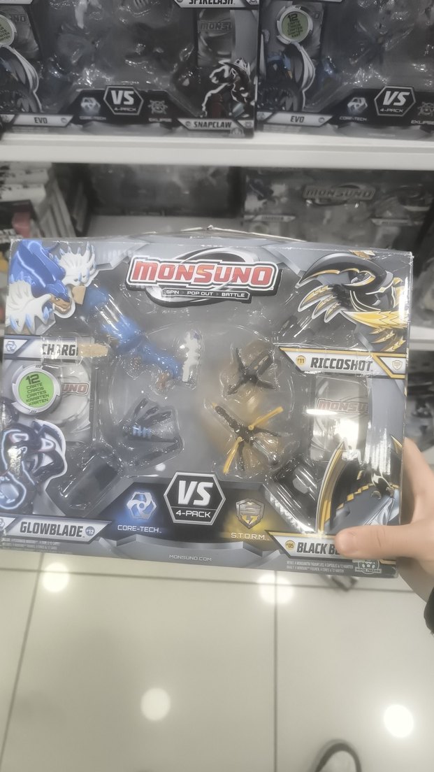 Monsuno 4'lü aksiyon figür seti, Riccoshot, Glowblade, Storm ve Black Blaze karakterlerini içerir. Detaylı tasarım ve aksesuarlar ile donatılmıştır.