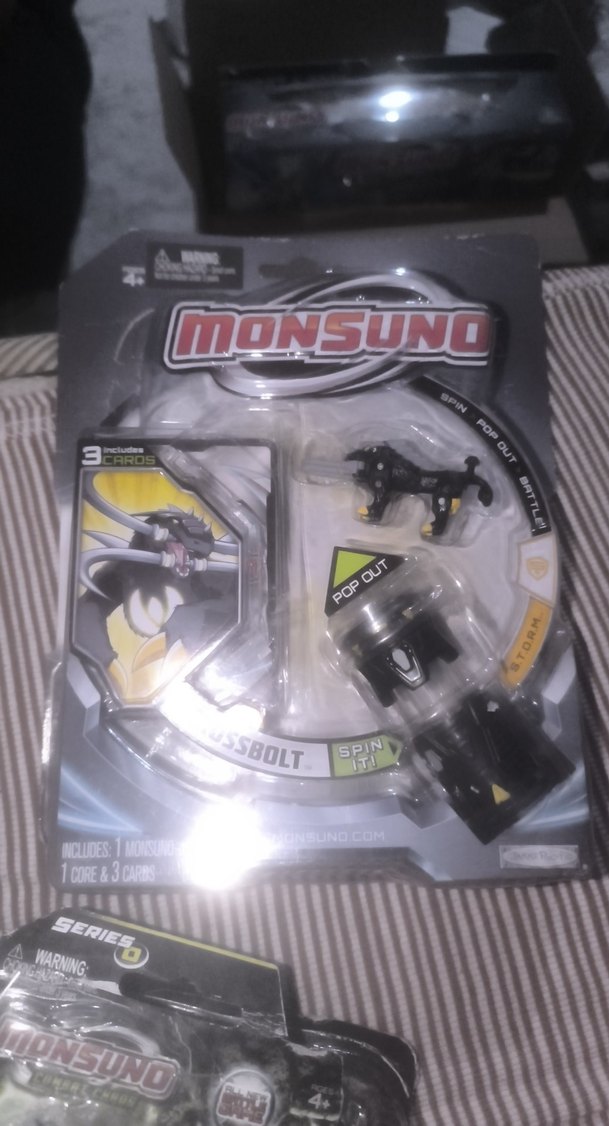 Monsuno SSBOLT siyah aksiyon figürü, çekirdek ve üç kart içerir. Pop-out ve döndürme özellikleriyle etkileşimli oyun sağlar. ⚔️
