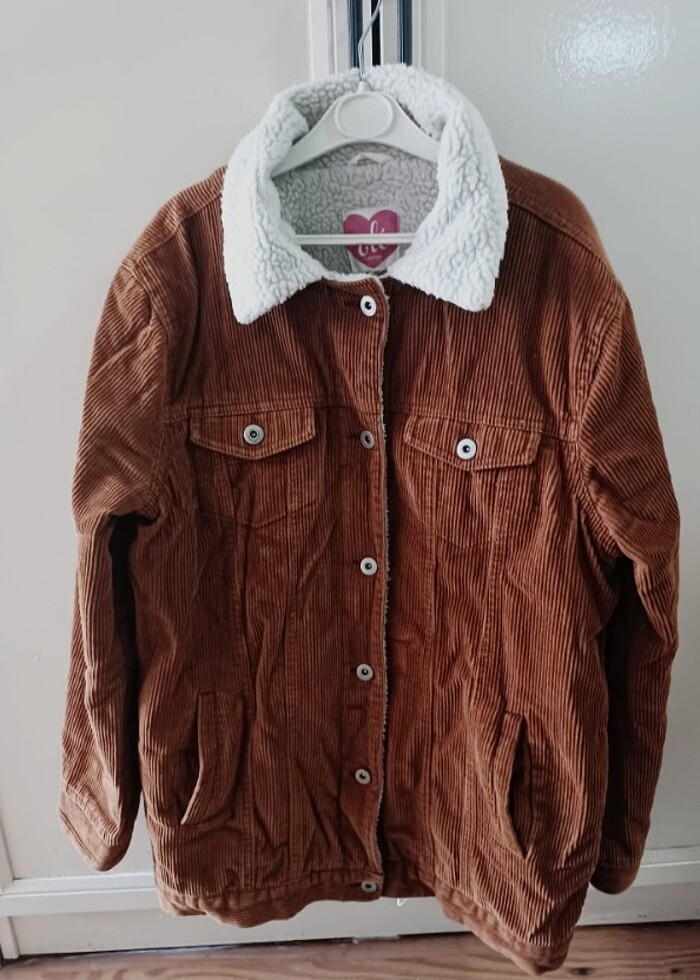 Kadife mont.Kiremit renktir.İçi kürklü olduğundan Sicak tutuyor.yirtigi söküğü herhangi bir şeyi yoktur. Koton markasına aittir.