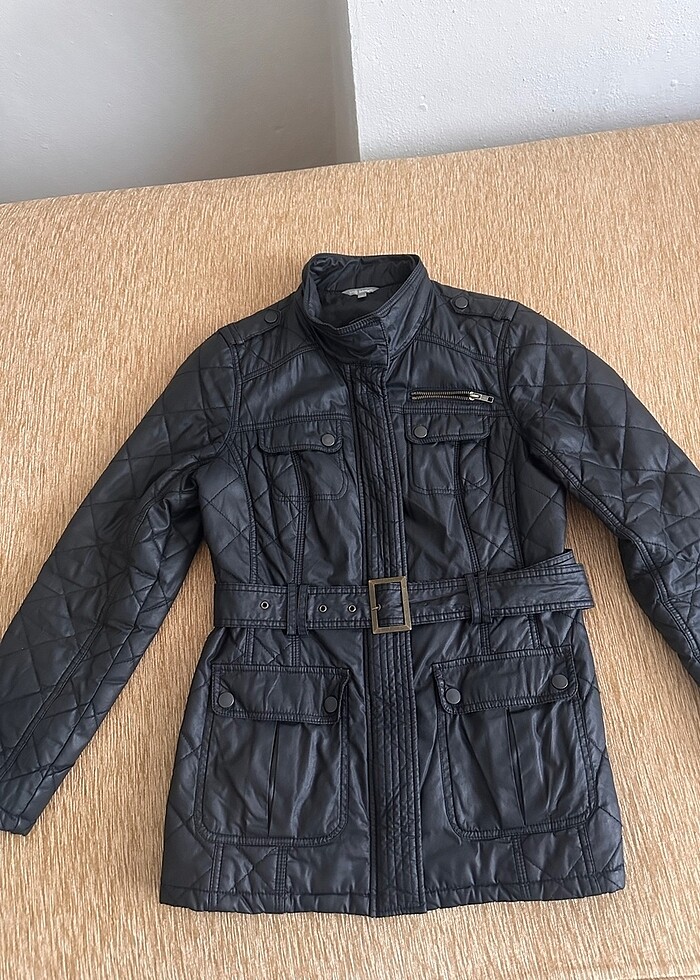 Marks&Spencer M ve L bedenlere olur kışlık kapitone görünümlü kısa siyah mont/kaban. Kilo alımı nedeniyle kullanılamamıştır. Boy 70 cm, omuz 40 cm, koltuk altı 54 cm, etek çevresi 125 cm, kol boyu 60 cm.
