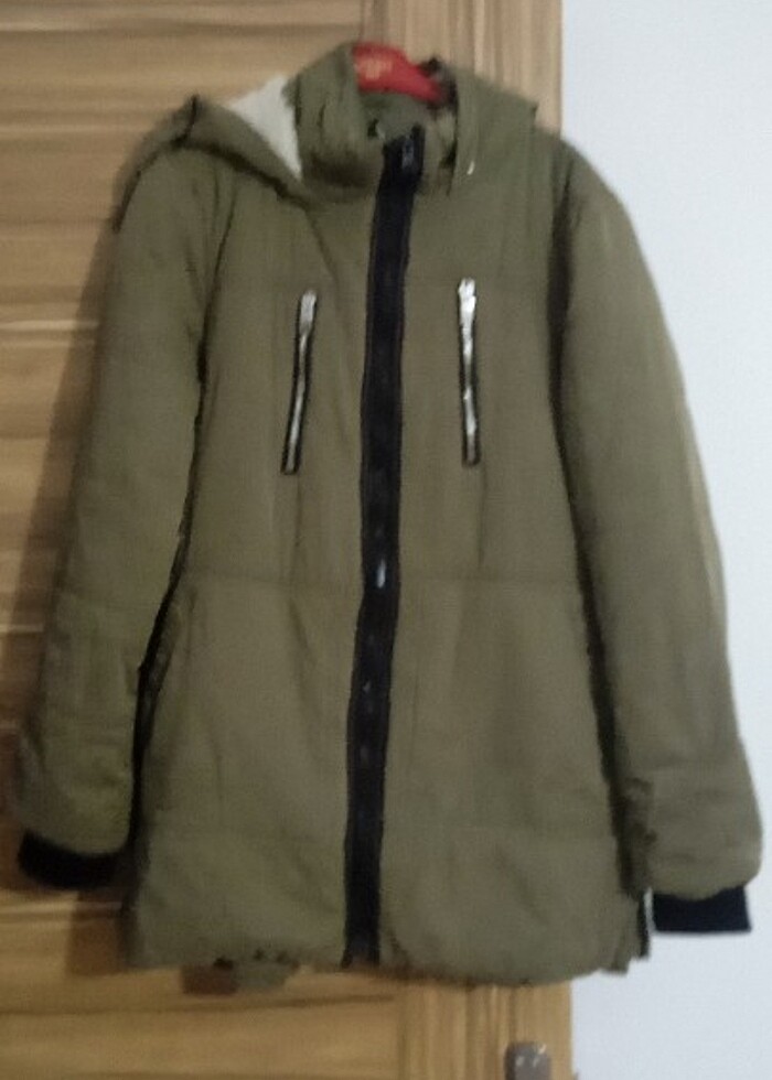 Fermuarlı tamir görmüş. Defosuz. Astarlı mont.