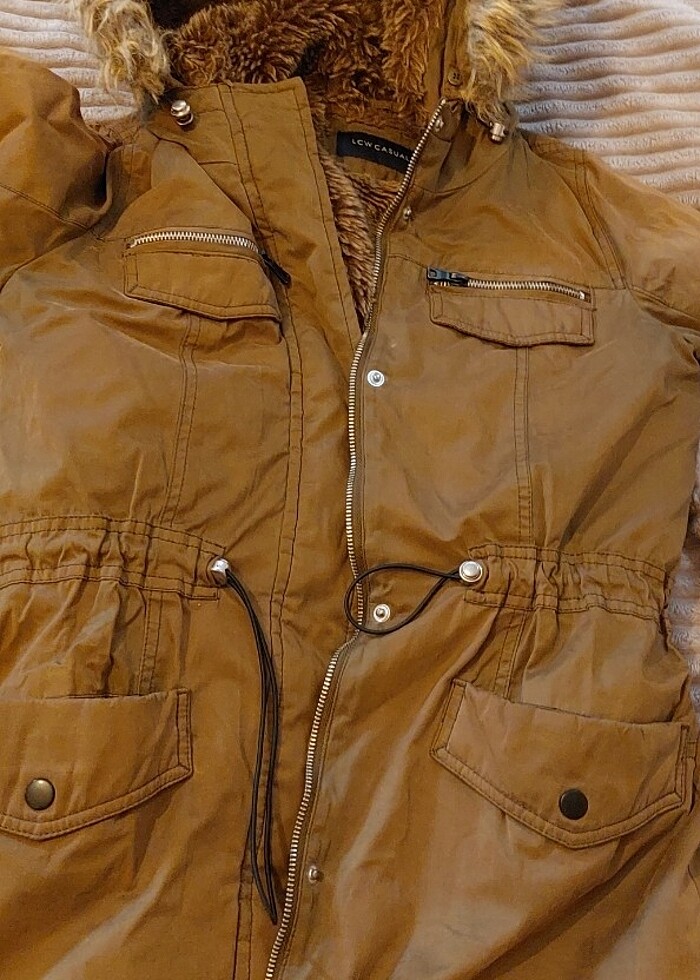 İçi kürklü mont yırtık falan yok sadece kollarında biraz renk dalgalanmasi var