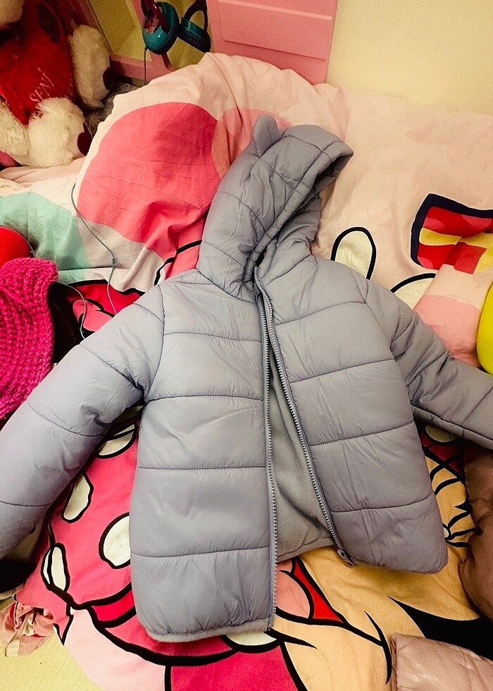 Sıfır hıc kullanılmadı fısur fosur yumusacık şişme mont rengi cok tatlı lila resımde tam cıkmadı ışıktan yumus yumus bir mont 5 yaş yazıyor ama kalıbı bıraz kücük o yuzden 4 yaş etiketledim