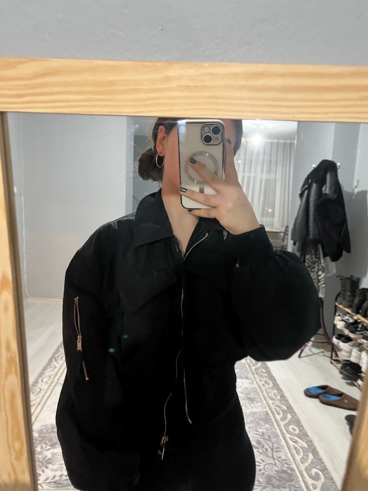 Siyah crop mont ceket