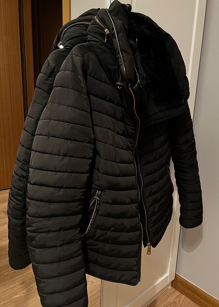 Zara mont durumu iyi sadece cep kısmın ince deri kaplamaları soyulmuş oda tamamen soyularak kullanılabilir çok şık duruyor kenarındaki ü. Saklanadabilen şapkası da var