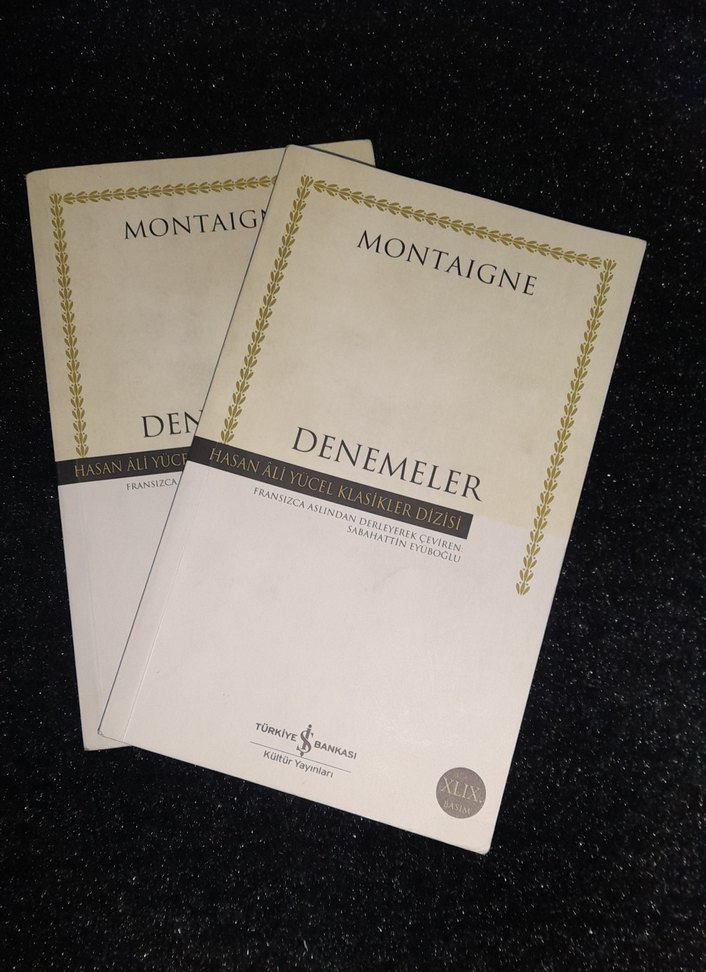 TANE FİYATIDIR!!! Dünya edebiyatının en önemli eserlerinden Montaigne - Denemeler. Yayınevi: Türkiye İş Bankası Kültür Yayınları (Hasan Âli Yücel Klasikler Dizisi). Durum: Kitap genel kondisyon olarak çok temizdir. Detay: Sadece en ön sayfada isim yazan küçük bir alan siyahla kapatılmıştır (Fotoğraflarda görebilirsiniz). Okumaya veya görselliğe engel değildir.