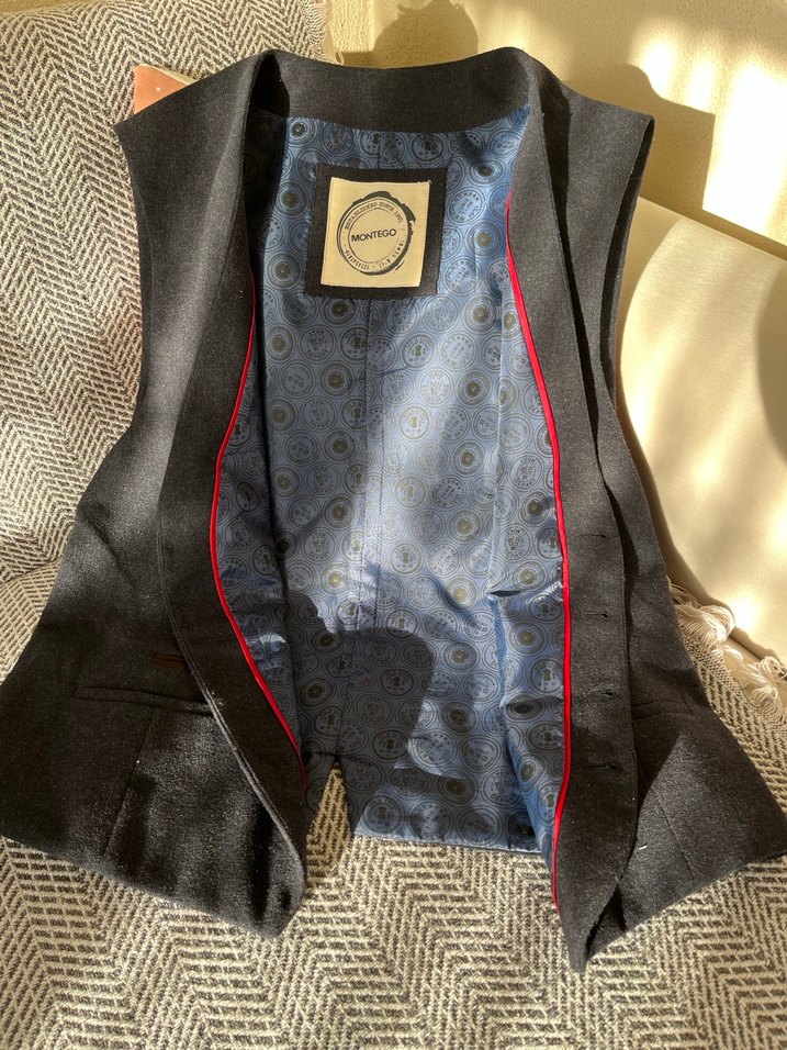 Montego markaya ait erkek klasik yelek, zamansız lacivert rengi ve özenli işçiliğiyle hem günlük şık kombinlerde hem de takım elbise tamamlayıcısı olarak kullanıma uygundur. İç kısmı desenli astarlıdır ve formunu koruyan kaliteli kumaşa sahiptir. Ölçüler: • Koltuk altından göğüs genişliği: 54 cm • Omuz hizasından uzunluk: 60 cm Beden bilgisi: EU 54 (XL/XXL) Kumaş içeriği etikette belirtildiği şekilde paylaşılmaktadır. Ürün temiz ve bakımlı durumdadır. Detaylı ölçüler paylaşıldığı için gönül rahatlığıyla değerlendirebilirsiniz.