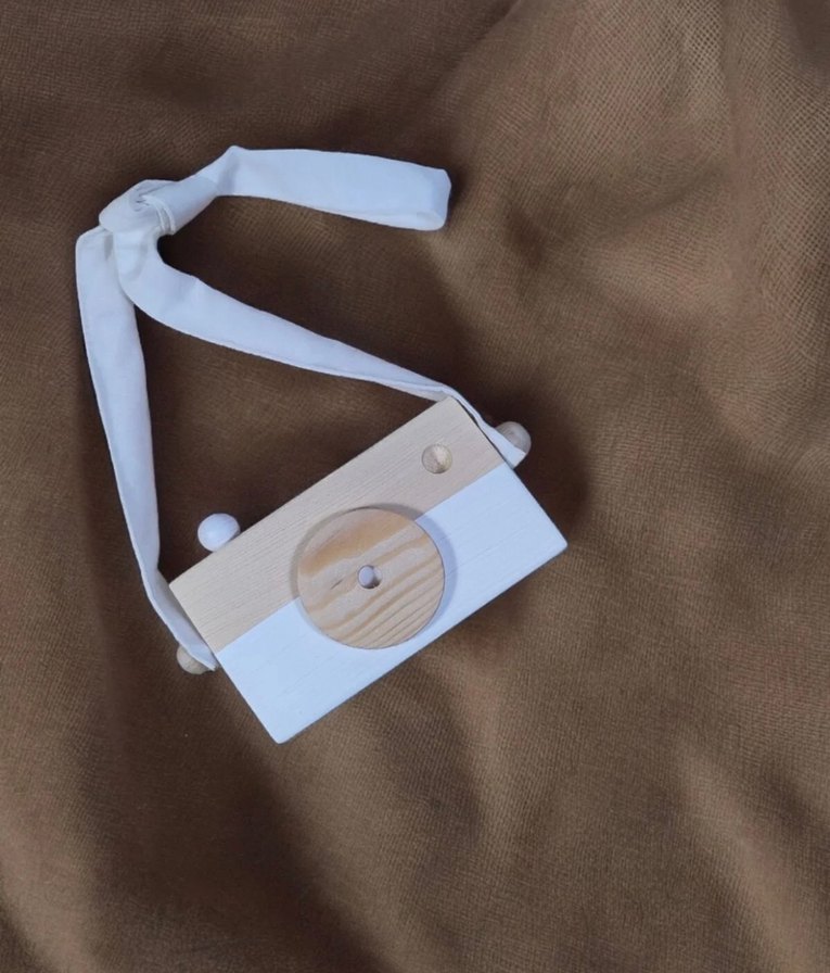 Montessori uyumlu ahşap oyuncak fotoğraf makinesi. Doğal ahşap yapısı ile hafif ve güvenlidir. El-göz koordinasyonunu destekler. Temiz durumdadır, fotoğraftaki ürün gönderilecektir.