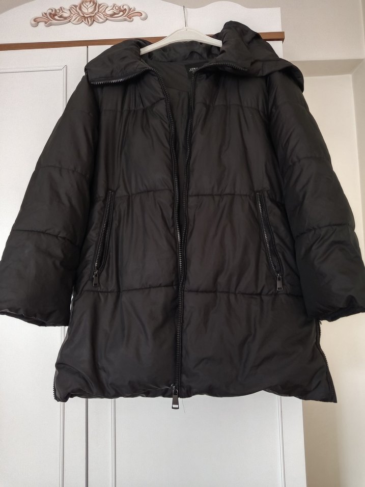 Yumuşak ve sıcak kumaştan, fermuarlı cepleri ve yüksek yakasıyla rahat, siyah midi kışlık mont. ❄️
