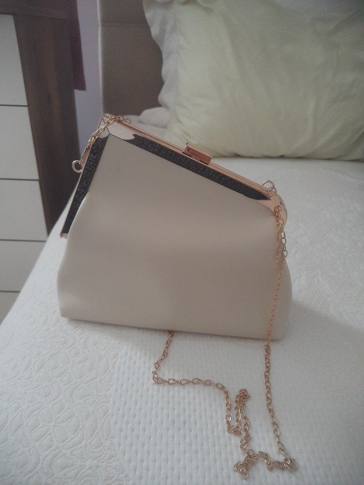 Moom Bag ,Ekru Yumuşak Zincirli çanta,Trendyoldan alındı,Ürünü sadece 2 kez düğünde kullanıldı,defosu veya bir sorunu yoktur modern tasarımı ve desensiz yüzeyiyle klasik zarafeti yansıtır. Günlük kullanıma uygundur.