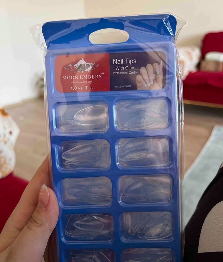 Moon Embers markalı, yapıştırıcılı mavi tırnak uçları, 100 adet profesyonel kullanım için uygun.