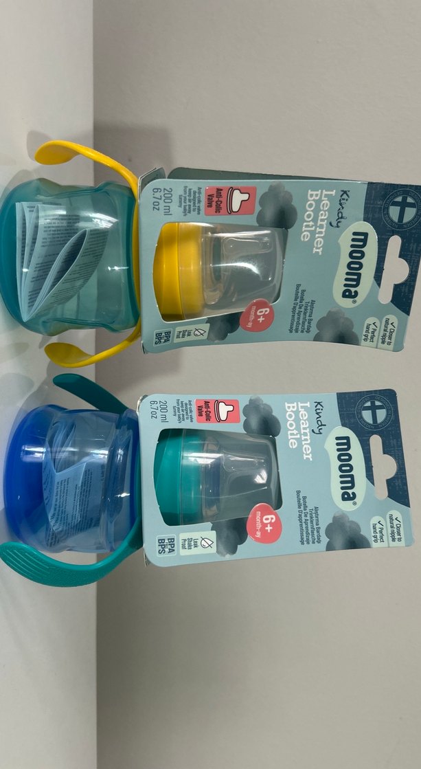 Moona renkli, kolay tutulabilen saplı bebek öğrenme biberonları, 270 ml kapasite. 6 aydan büyük bebekler için uygun. BPA içermez. Adet fiyatı