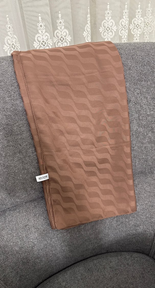 Sentetik kumaştan yapılmış, pilili tasarıma sahip taba kadın şalı. Rahat ve çağdaş bir stil sunar. Temel bir görünüm için uygundur.