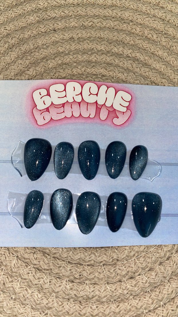 Parlak ve hafif ışıltılı mavi takma tırnaklar, şık ve zarif bir görünüm sunar. ✨Ürün kedi gözü ojeyle hazırlanır. %100 el yapımıdır. 10lu olarak gönderilmektedir. Kalıcı oje ve jel ile hazırlanmaktadır. Kendi ölçünüze göre sipariş verebilirsiniz ♀️