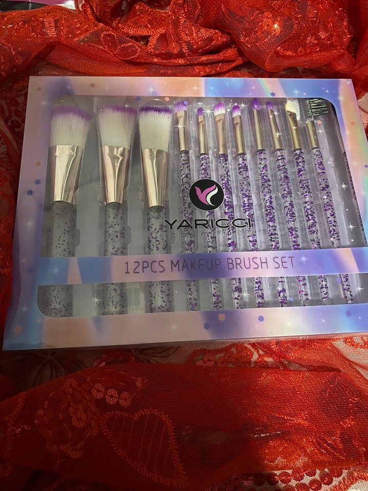 Mor simli saplara sahip 12 parçalık makyaj fırçası seti, yüz ve gözler için çeşitli fırçalar içerir. Hassas makyaj uygulaması sağlar. ✨