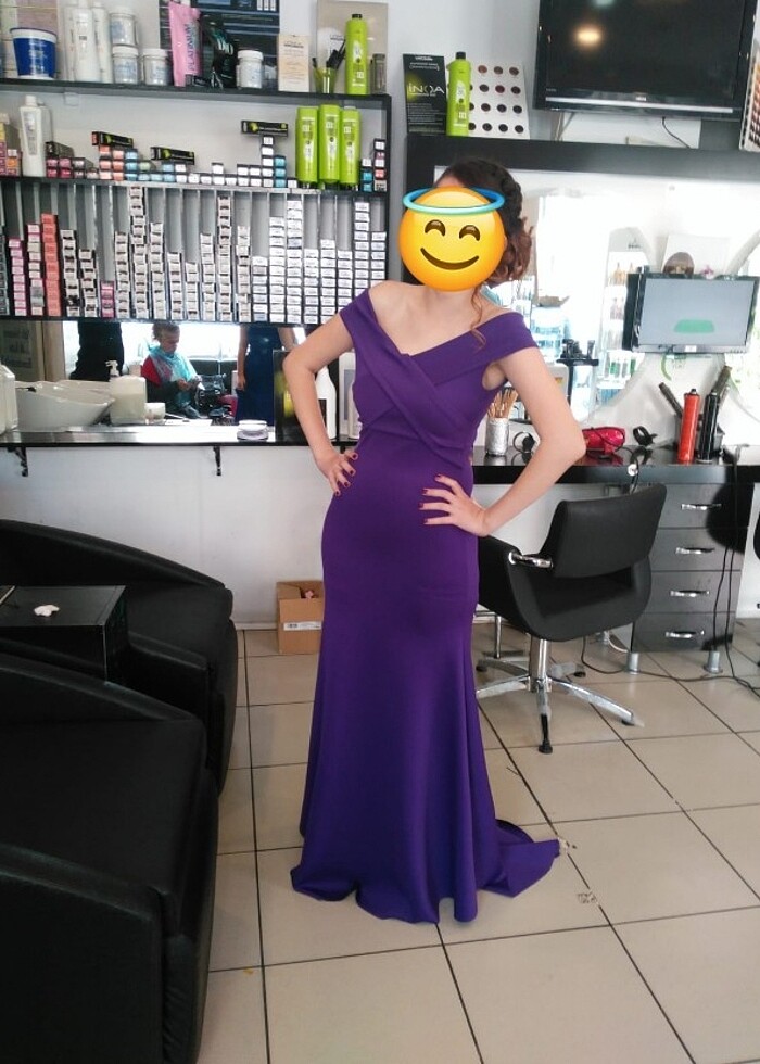 36-38 beden için uygun Açık omuz detaylı kuyruklu abiye esnek kumaşa sahip sadece 1 kez kullanıldı