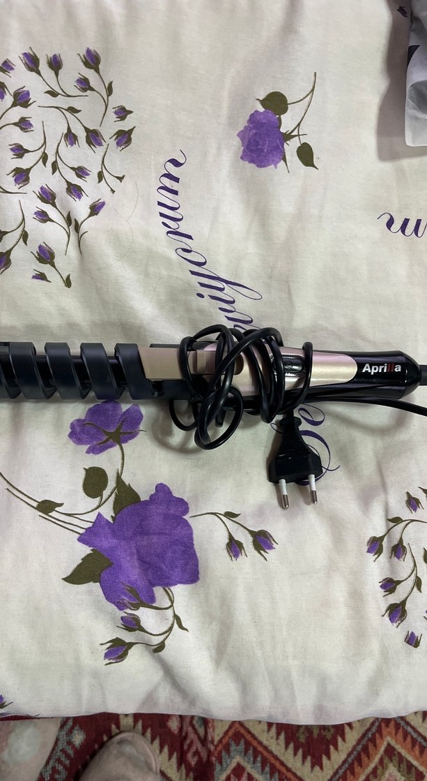Aprill marka koyu mor renkte, spiral tasarımlı saç şekillendiricidir. Kablo ve fişi mevcuttur.
