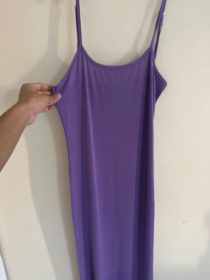 Pastel mor askılı, straplez yaka ve midi boy, vücuda oturan hamile ve emzirme geceliği. Yumuşak ve rahat kumaşlı. Yeni hiç giyilmedi sıfır s m uyumlu