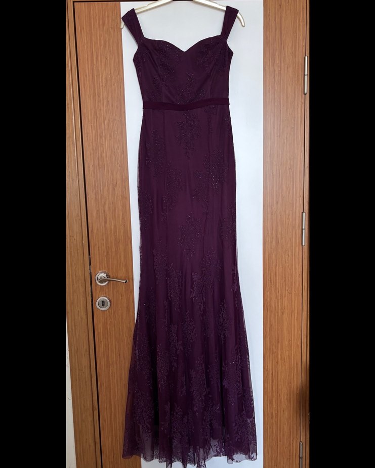 Mor askılı simli uzun balık model astarlı abiye elbise