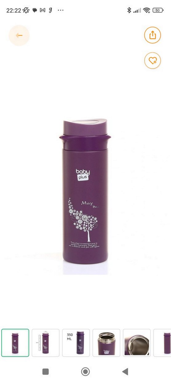 Mor renkli Baby Plus termos matara, güvenli kapak ve dekoratif çiçek desenine sahiptir. Çocuklar için içecekleri sıcak tutar.