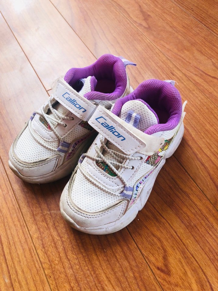 Mor iç astarlı, bağcıklı ve cırt cırtlı kız çocuk spor ayakkabısı. Renkli batik desenli ve kauçuk tabanlıdır.