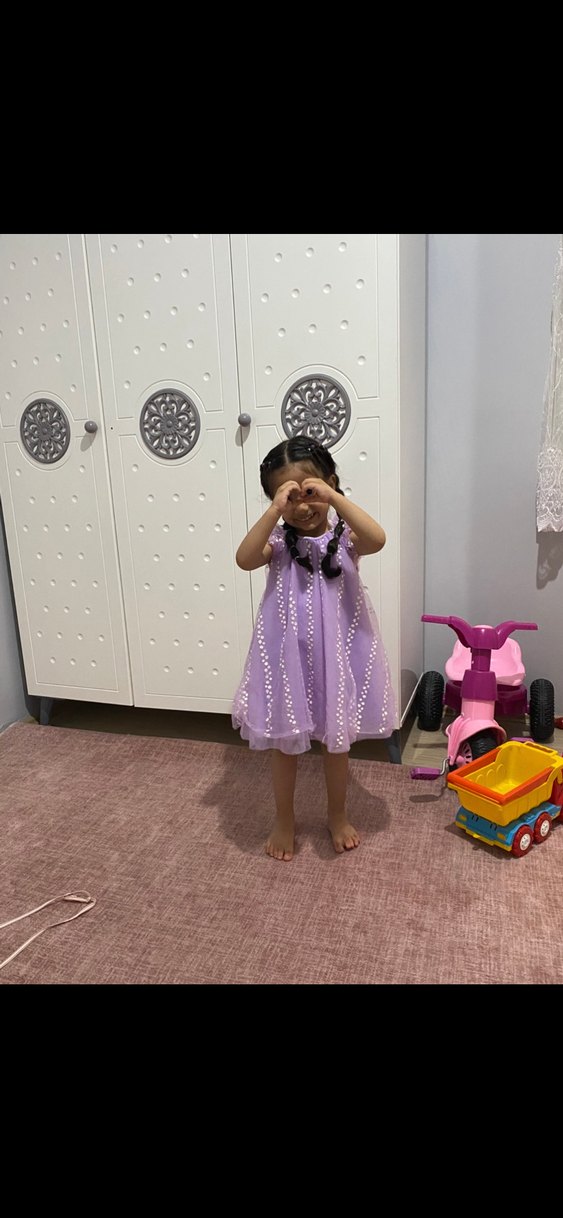 Mor Bağcıklı Çocuk Elbisesi