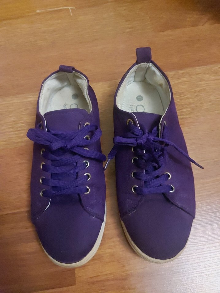Mor bağcıklı kadın spor ayakkabısı, düz tabanlı kauçuk tabanlı günlük sokak stili için uygundur. temiz ve hiç bi sorunu defosu yoktur