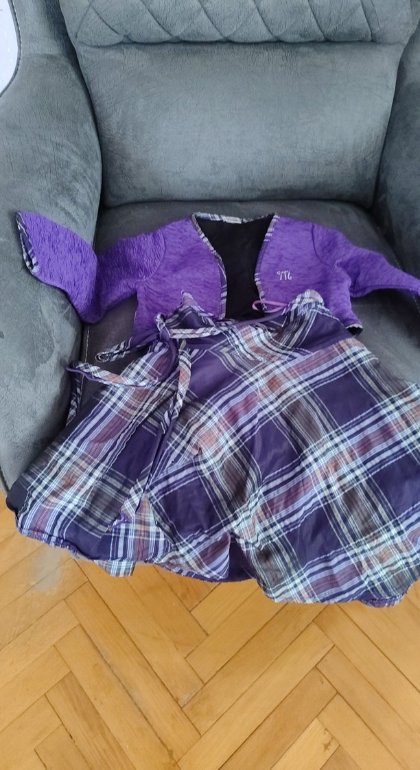 Mor Bağcıklı Ekose Etek ve Düğmeli Bolero