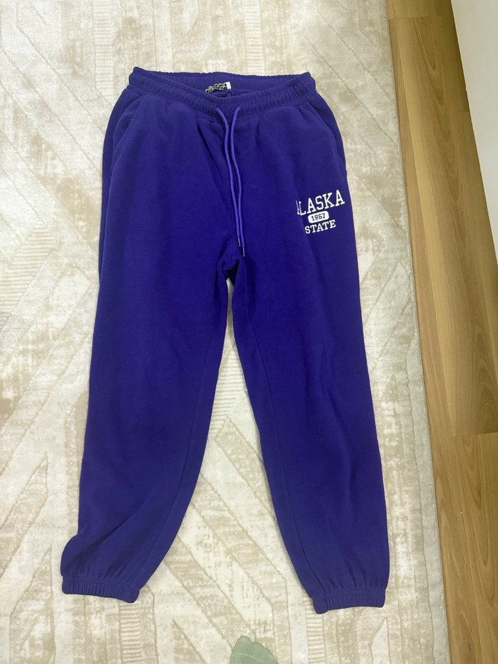 Mor renkli, bağcıklı ve baskılı "LASKA" yazılı, rahat kesim kadın eşofman altı, spor ve günlük kullanıma uygundur. ♀️