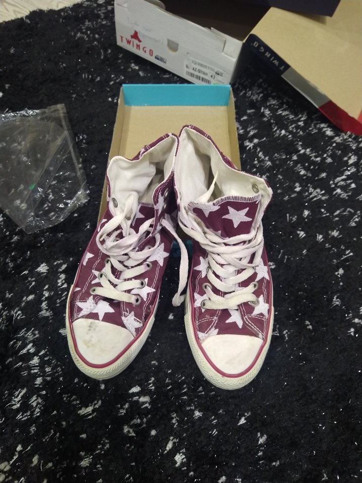 Mor, bağcıklı ve cırt cırtlı, renkli yıldız desenli, düz tabanlı kadın sneakers.
