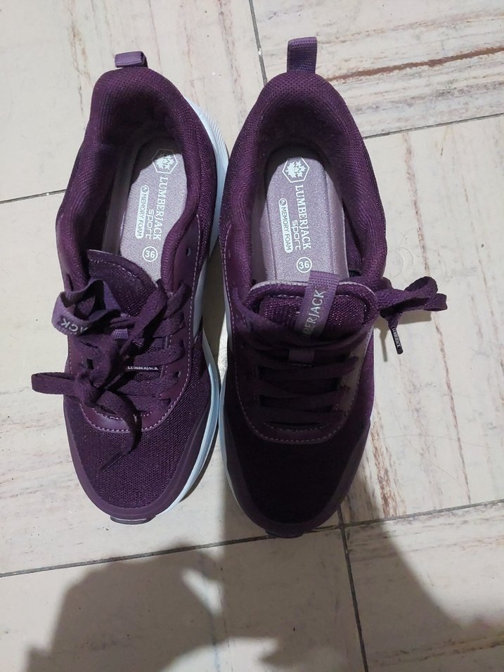 Mor renk, bağcıklı ve dolgu topuklu kadın spor ayakkabısı. Kauçuk malzemeden üretilmiştir, spor ve sokak stili için uygundur. sıfır ürün. mağaza fiyatı 2.300 tl