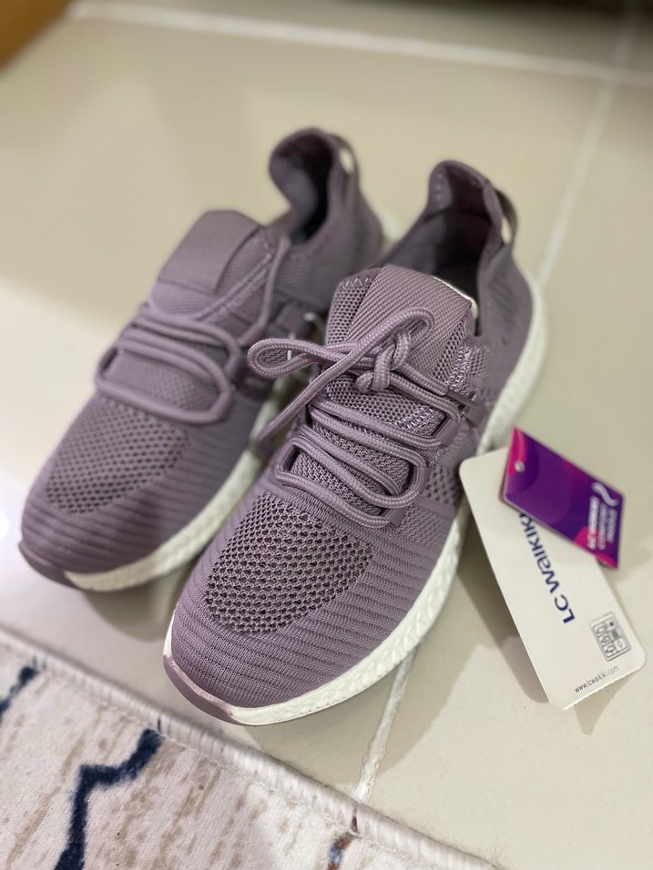 Mor bağcıklı kadın spor ayakkabısı, nefes alabilir örgü üst yüzeye ve beyaz yastıklı tabana sahiptir, sokak stili ve spor şıklık için uygundur.