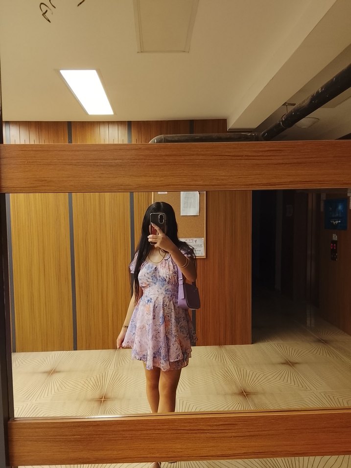 Mor bağlama desenli elbises, askılı kolları ve transparan pastel görünümüyle ofis için uygun. Gevşek kesim, straplez yaka ve çağdaş bohem tarz sunar.