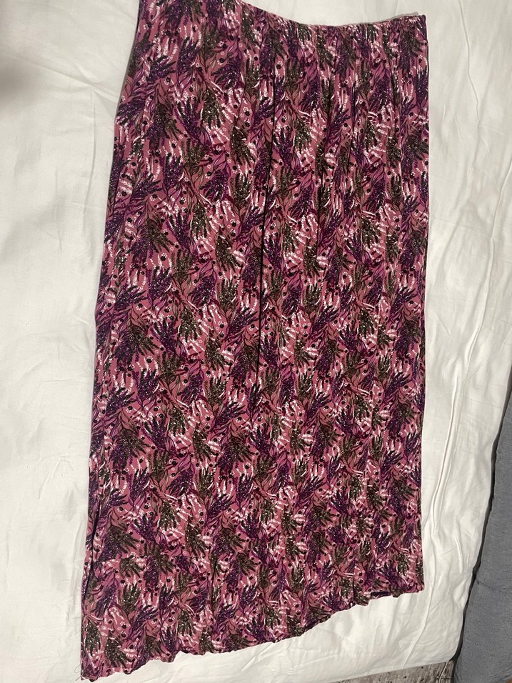 60-80kg uygun 85cm boy Mor bağlama desenli pilili uzun etek, bol kesim ve bohem tarzıyla günlük kullanıma uygundur.