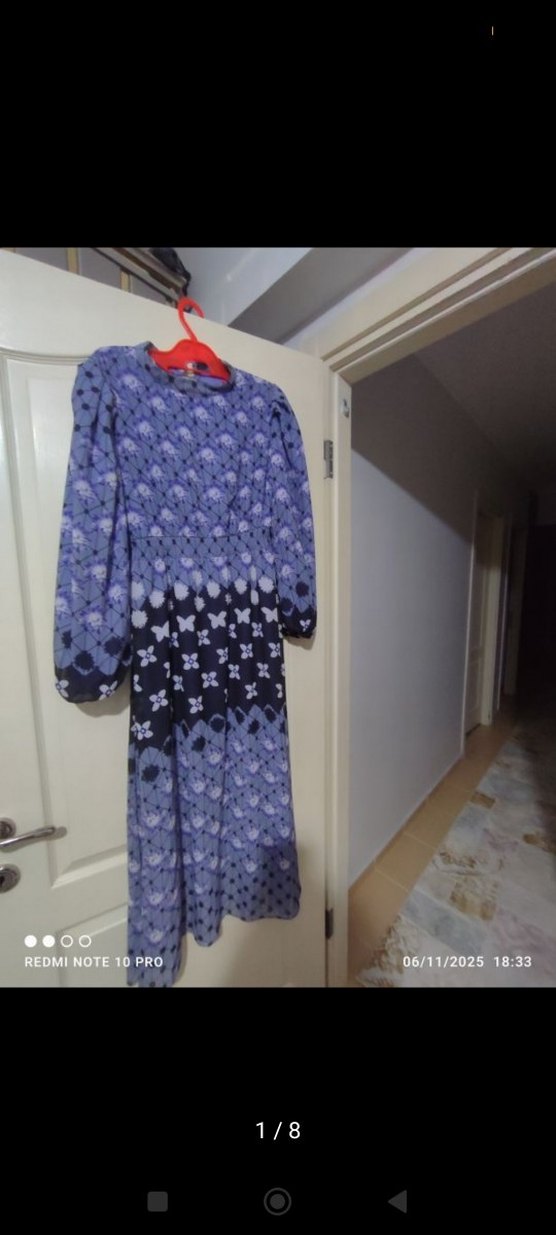 Mor renkli, bağlama desenli uzun elbise. Örgü dokusu, uzun kollu ve yuvarlak yakalıdır. Rahat kesimiyle bohem tarzını yansıtır.
