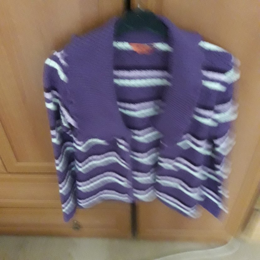 Mor renkli, bağlamalı desenli, uzun kollu ve salaş kesim triko kazak. Günlük kullanıma uygun, rahat ve şık bir görünüm sunar.