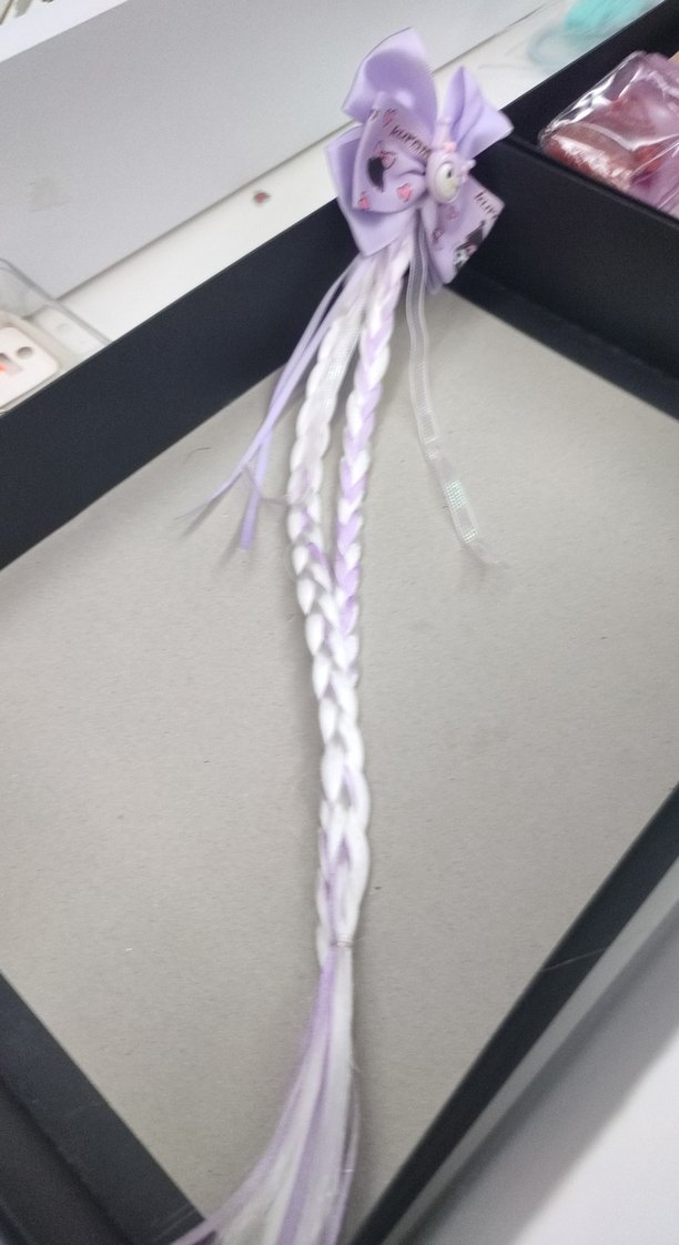 Mor pastel tonlarda bağlamalı kurdele ve örgülü tasarıma sahip gotik tarzda saç aksesuarı.