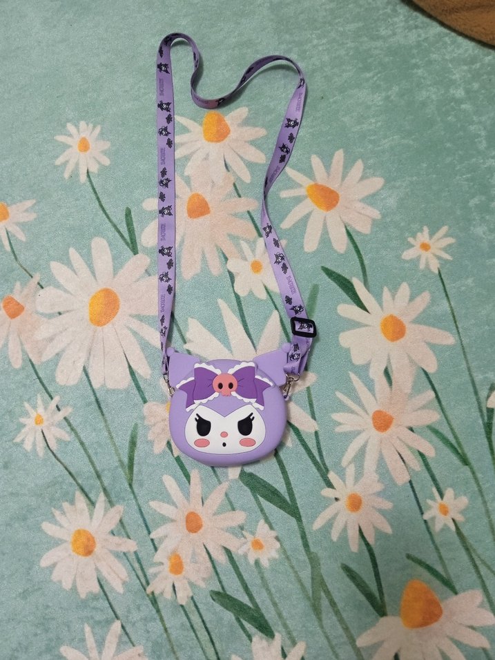 Mor tie-dye desenli, bağlamalı kayışa sahip, rock punk tarzında kız çantası.