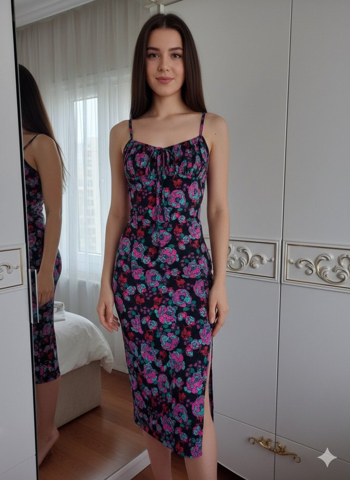 Dar kesim, uzun boy, ince askılı ve drapeli mor bağlamalı elbise. Sentetik kumaştan, gotik bohem tarzıyla romantik akşamlar için ideal. BUTIK URUNU