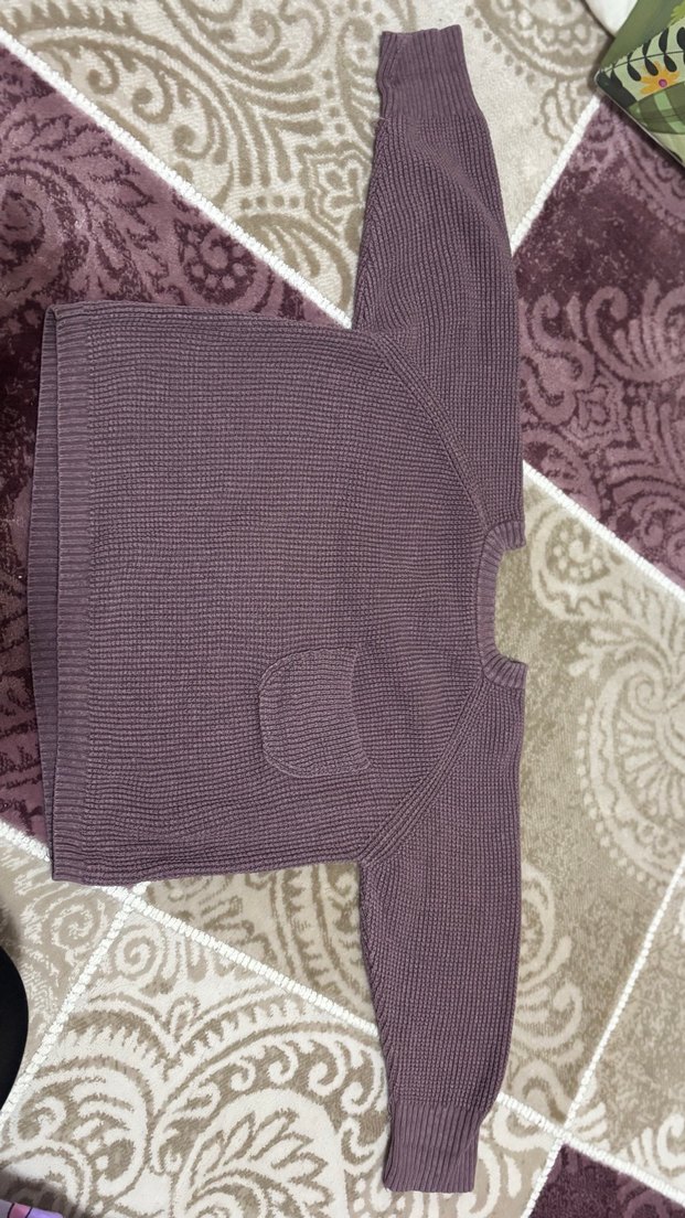 Mor renkli, örgü kız çocuk kazak, uzun kollu ve yuvarlak yakalıdır. Salaş kesim ve önünde küçük cep bulunur. Yumuşak örgü kumaştan üretilmiştir. Çok az kullanıldı yıkayıp kaldırdım gönül rahatlığıyla alabilirsiniz ürün de iade yoktur.