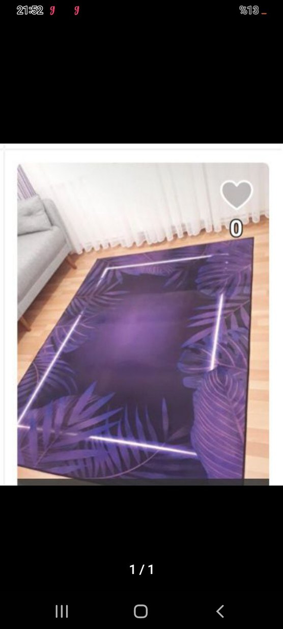 Koyu mor renkte, çağdaş tarzda yaprak baskılı halı.