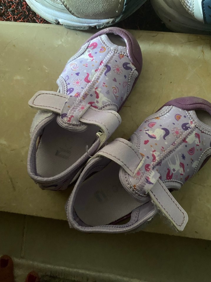 Mor renkli, pastel baskılı ve cırt cırtlı kız terlikleri. Kauçuk malzemeden üretilmiştir, rahat ve günlük kullanım için uygundur.