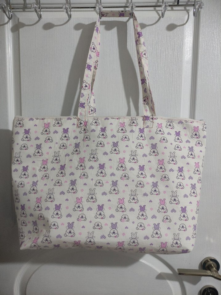Mor baskılı, sentetik kumaştan yapılmış, fermuarlı kadın günlük çantasıdır.6 adetden oluşur kendi el yapimim biri çok büyük ve geniş içine kalın battaniye kalın ıslak mendil ve daha bussuru şey alır ikincisi de enli ve uzun geniş ikisi kalın tela ile yapıldı baya dik duruyor cepli digerleride normal astarlı fermuarlı toplu fiyattır alana hayırlı olsun