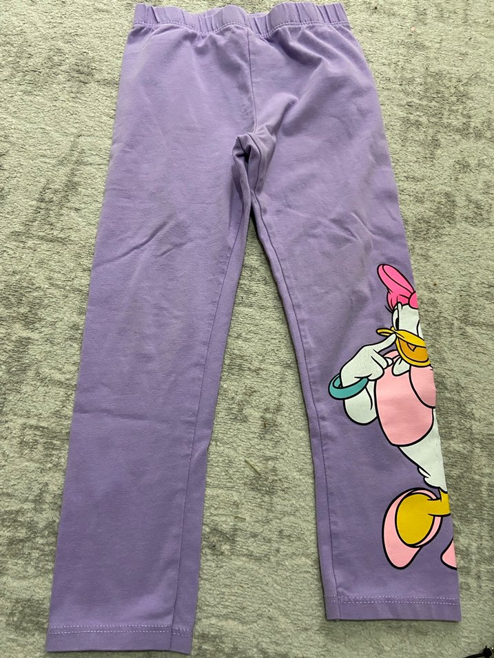 Mor renkli, baskılı karakter desenli kız taytı, elastik bel bandına sahip yumuşak ve sıcak kumaştan üretilmiştir.