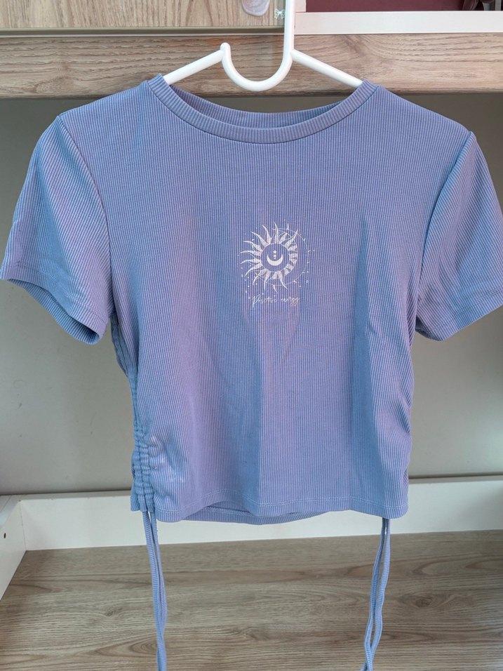 Kısa kollu, yuvarlak yakalı ve dar kesim kız tişörtü.