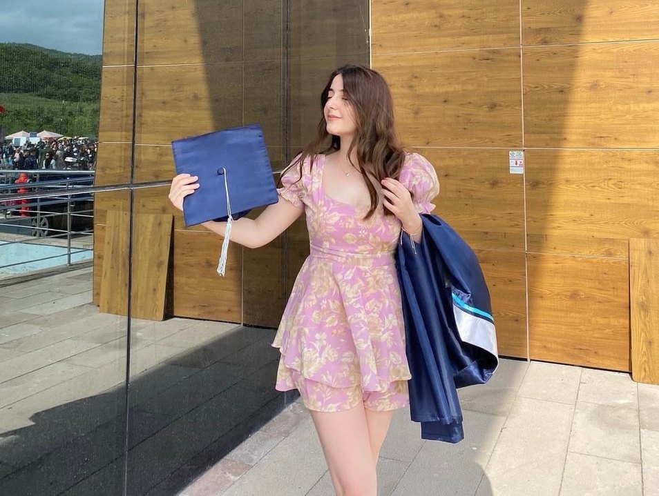 Gold Baskılı Midi Mezuniyet Elbisesi