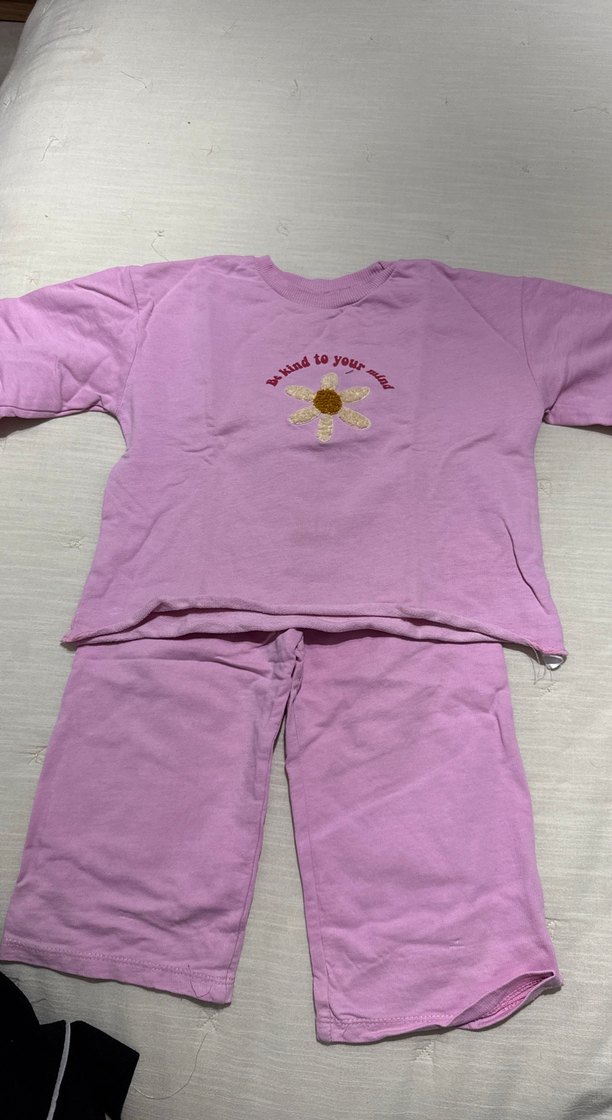 Mor renkli kız eşofman takımı, rahat kesim ve uzun kolludur. Yumuşak ve sıcak kumaştan yapılmıştır, pastel baskılı ve bohem, retro sokak stilini yansıtır.