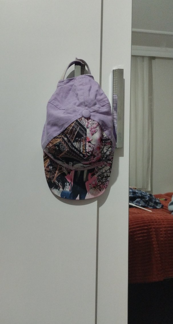Mor renkli, baskılı desenli tekstil şapka kapanışa sahip, günlük sokak stili için uygun.